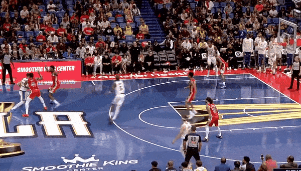 3分線外一個(gè)假動(dòng)作晃開(kāi)防守,颯沓流星直奔籃下雙手暴扣,管你這那的