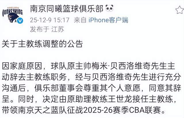 CBA新賽季還沒有拉開大幕,就有球隊(duì)更換了主帥,南京同曦方面官宣,由于貝西諾維奇?zhèn)€人原因辭職,王世龍成為南京同曦新任主帥,不過根據(jù)媒體報(bào)道,南京同曦方面是不滿意貝西諾維奇在CBA俱樂部杯的表現(xiàn),后續(xù)溝通不理想導(dǎo)致了。