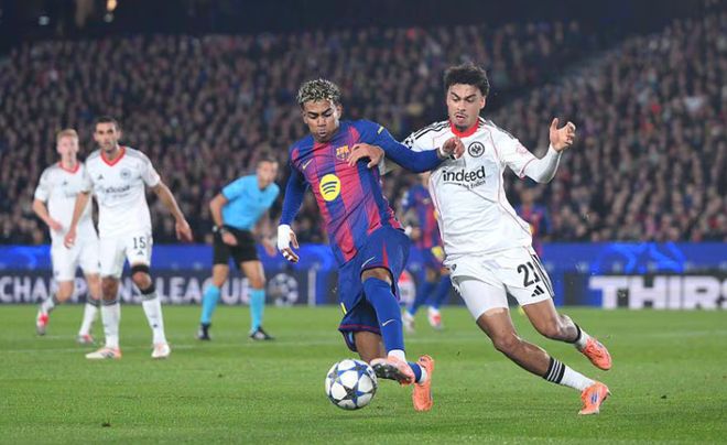 面對法蘭克福,巴薩坐鎮(zhèn)主場情況下遲遲找到比賽狀態(tài),先是拉菲尼亞越位位置送出傳中,讓萊萬破門被吹無效,隨后不久,赫拉德-馬丁外圍遠射又被撲出。第21分鐘,巴薩前場進攻受阻,法蘭克??焖俜磽?,最后克瑙夫禁區(qū)爆射破門,讓巴薩率先落后,到了上半場結束,依然沒有扳平比分。